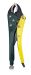Con tornillo de ajuste y palanca de liberación una mano. Forjado en acero aleado. Mandíbulas curvas anchas con corta alambre. Apertura tipo europea.