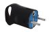 Clavija con sujetacables abatible y doble sistema de tierra. Con asa.